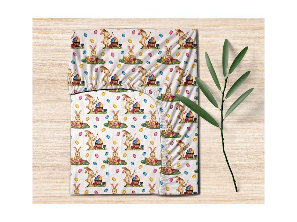 Ervi bavlnené prestieradlo - Veľkonočný vzor - biely