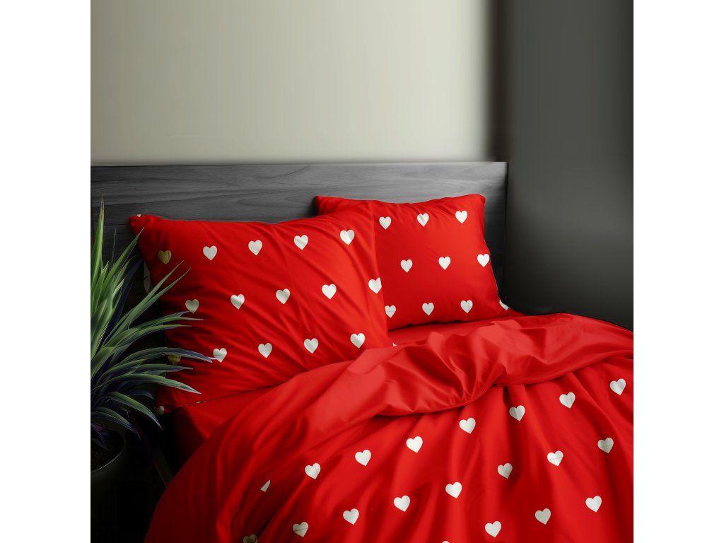 Ervi Bavlnené obliečky DUO - Red Love/červené