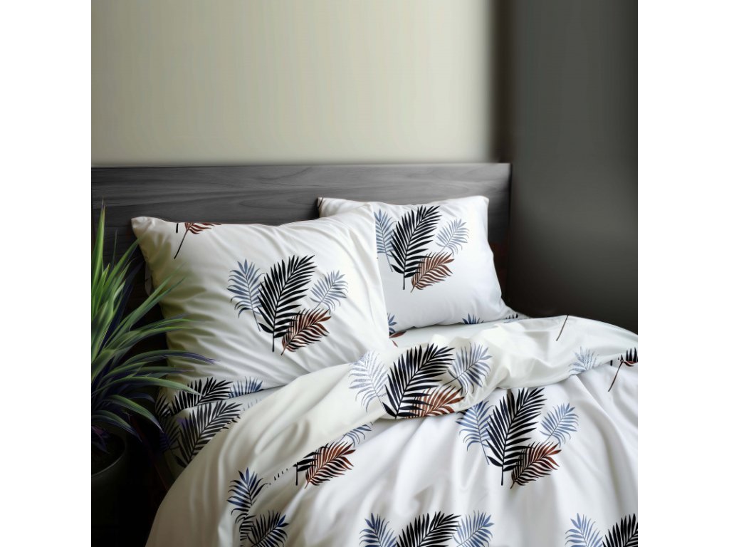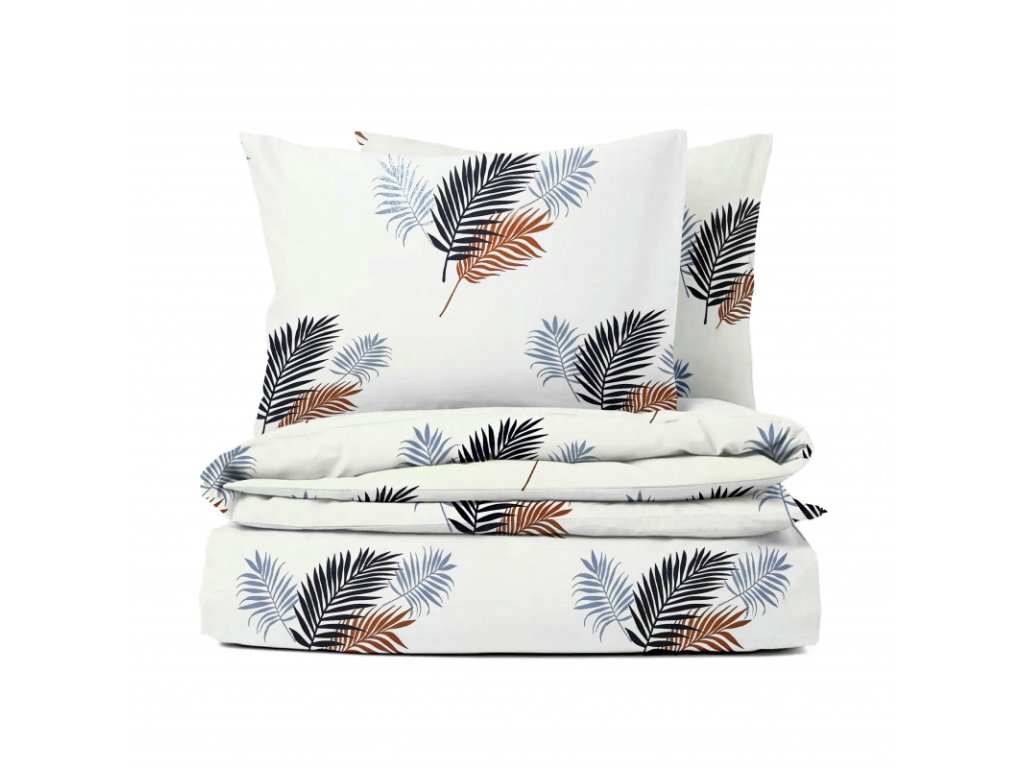 Ervi bavlnené obliečky DUO - hnedé a modré palmové listy/biele