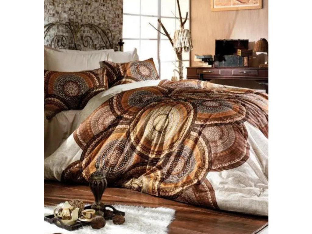 Ervi bavlnené obliečky DUO - dizajnový vzor na béžovom/hnedé