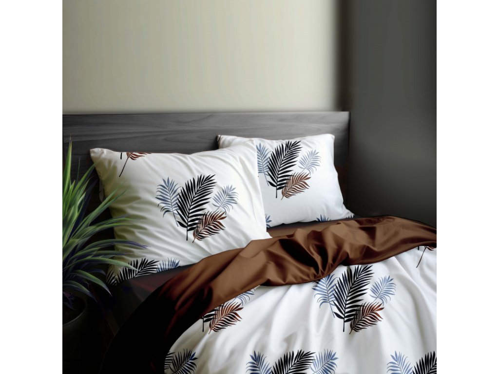 Ervi bavlnené obliečky DUO - hnedé a modré palmové listy/hnedé