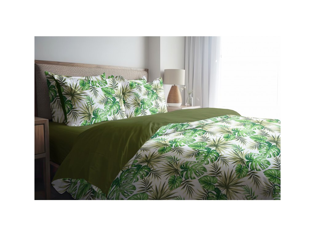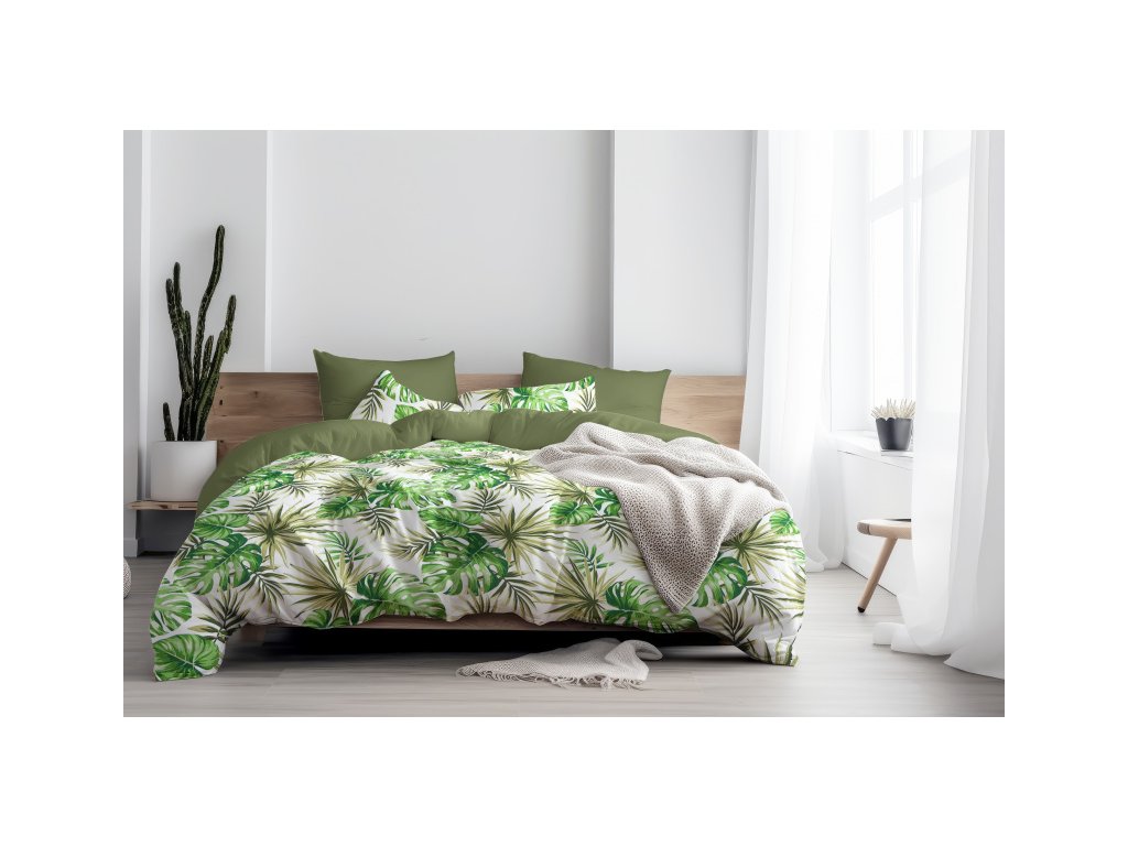 Ervi bavlnené obliečky DUO - Monstera zelená/Zelené