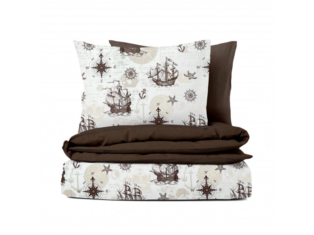 Ervi bavlnené obliečky DUO - Morské dobrodružstvá hnedé/hnedé