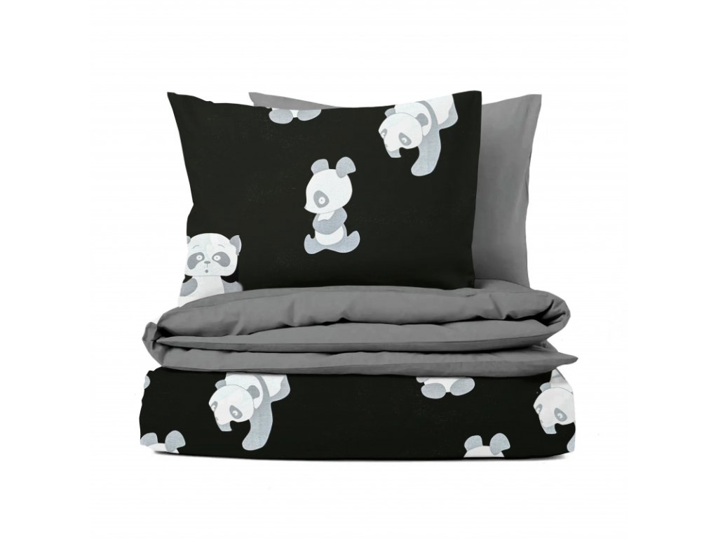 Ervi bavlnené obliečky - Pandy na čiernom/sivé