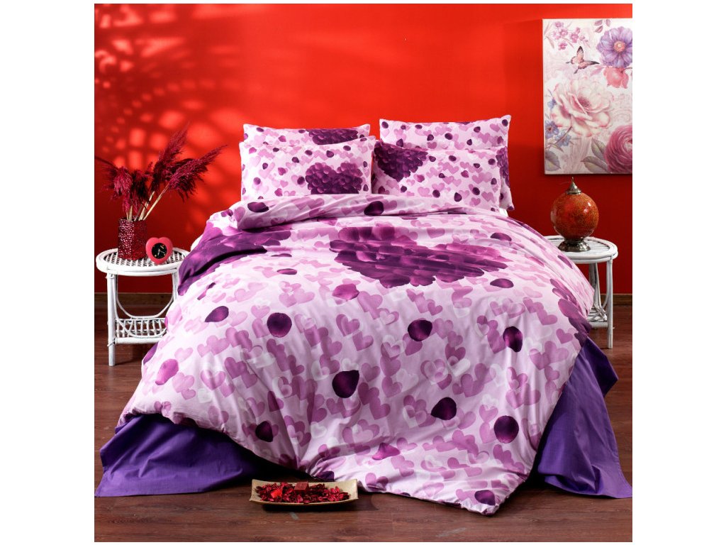 Ervi bavlnené obliečky obojstranné - srdce z ružových lístkov/fialové