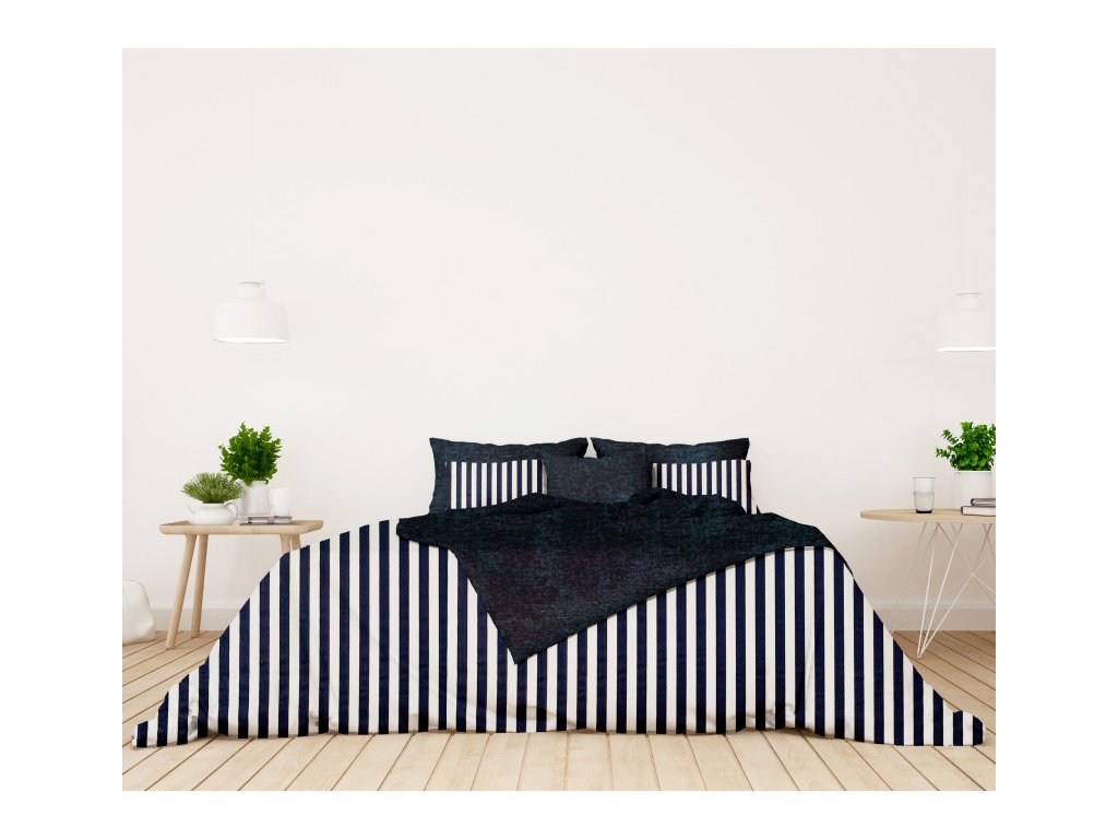 Ervi bavlnené obliečky DUO - tmavo modrý pruhy