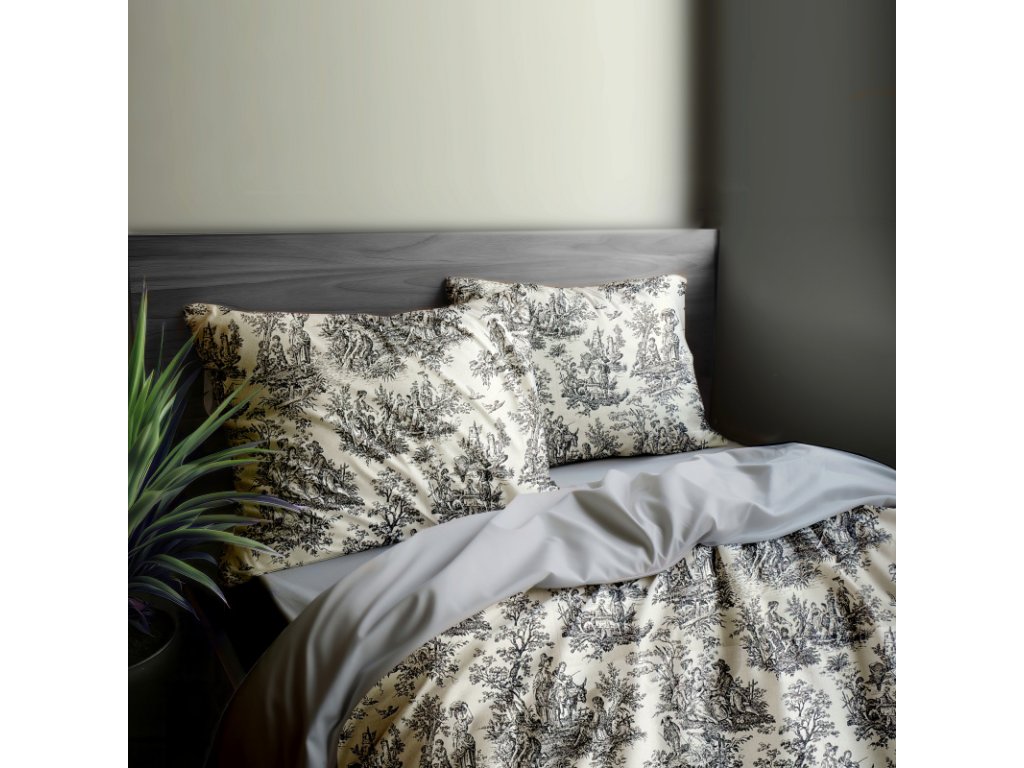 Ervi Bavlnené obliečky DUO - Toile de Jouy/tmavo šedý