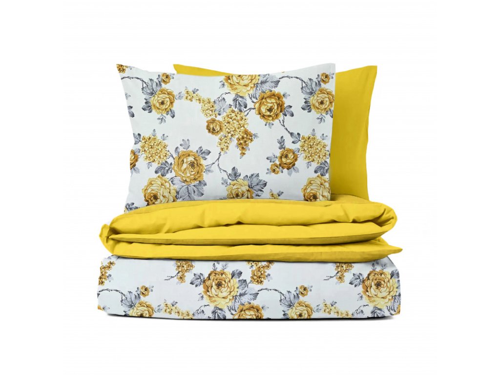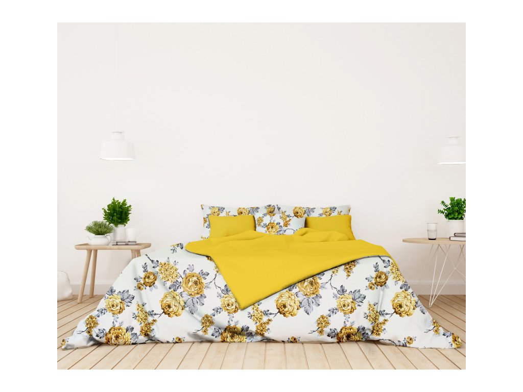 Ervi bavlnené obliečky DUO - žlté kvety na bielom/horčice