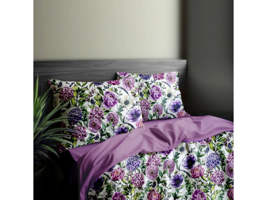Ervi Bavlnené Saténové obliečky DELUXE DUO - Fialová záhrada/fialové
