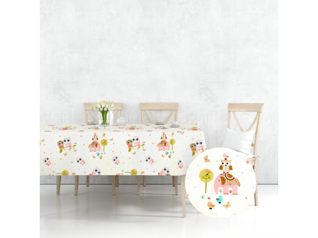 Ervi bavlnený obrus na stôl okrúhly - malej sovy a slony