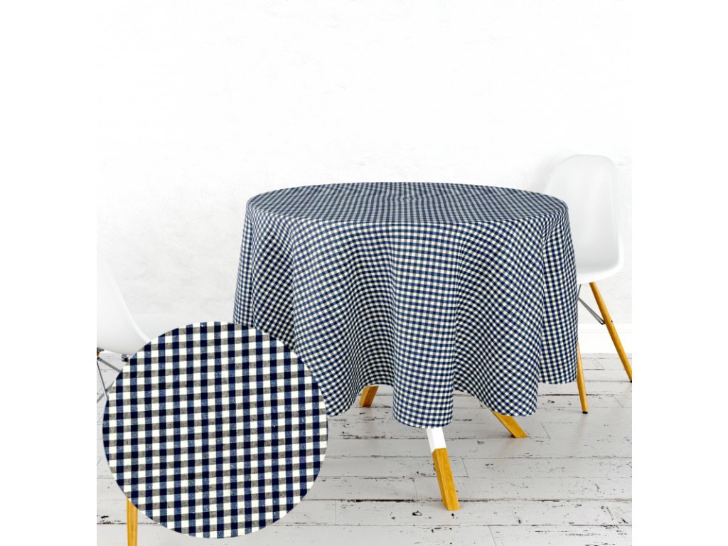 Ervi bavlnený obrus na stôl okrúhly - Tradičná kocka - modrá