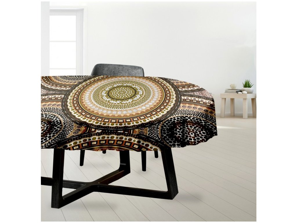 Ervi bavlnený obrus na stôl oválny - dizajnový vzor na béžovom