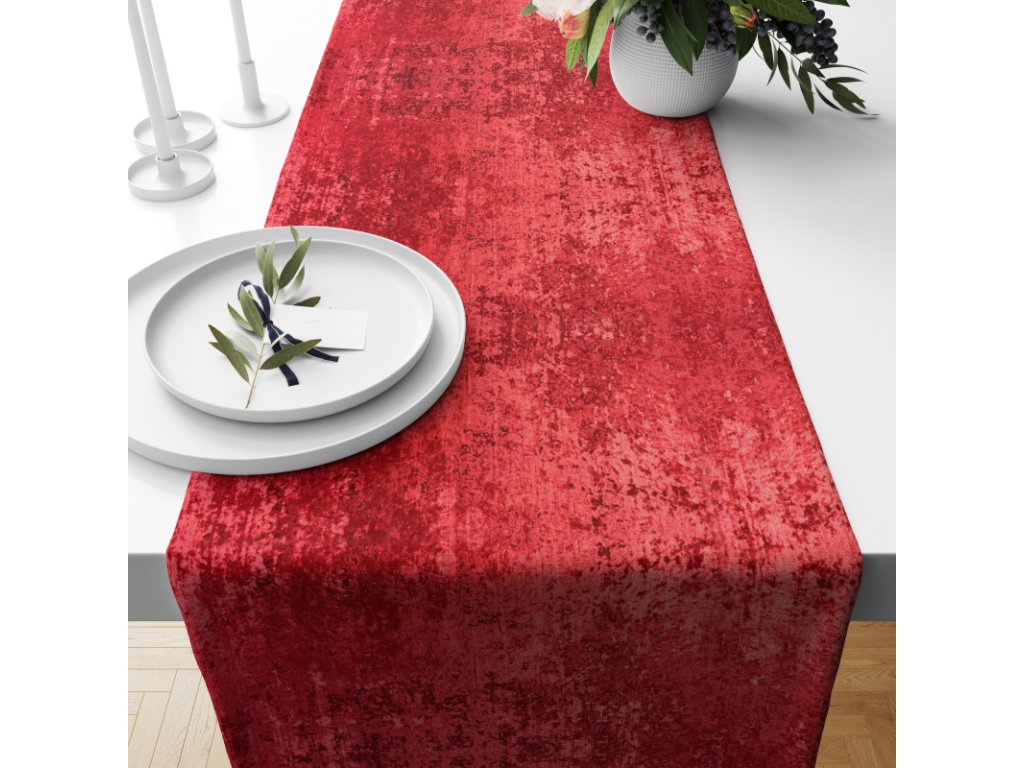 Ervi dekoračný behúň na stôl krčený zamat červený