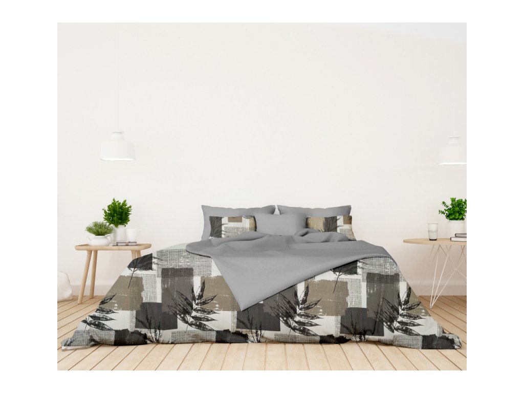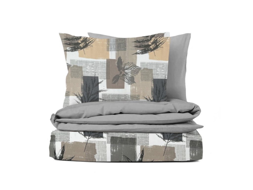 Ervi FLANELOVÉ bavlnené obliečky DUO - Listy šedej/béžovej