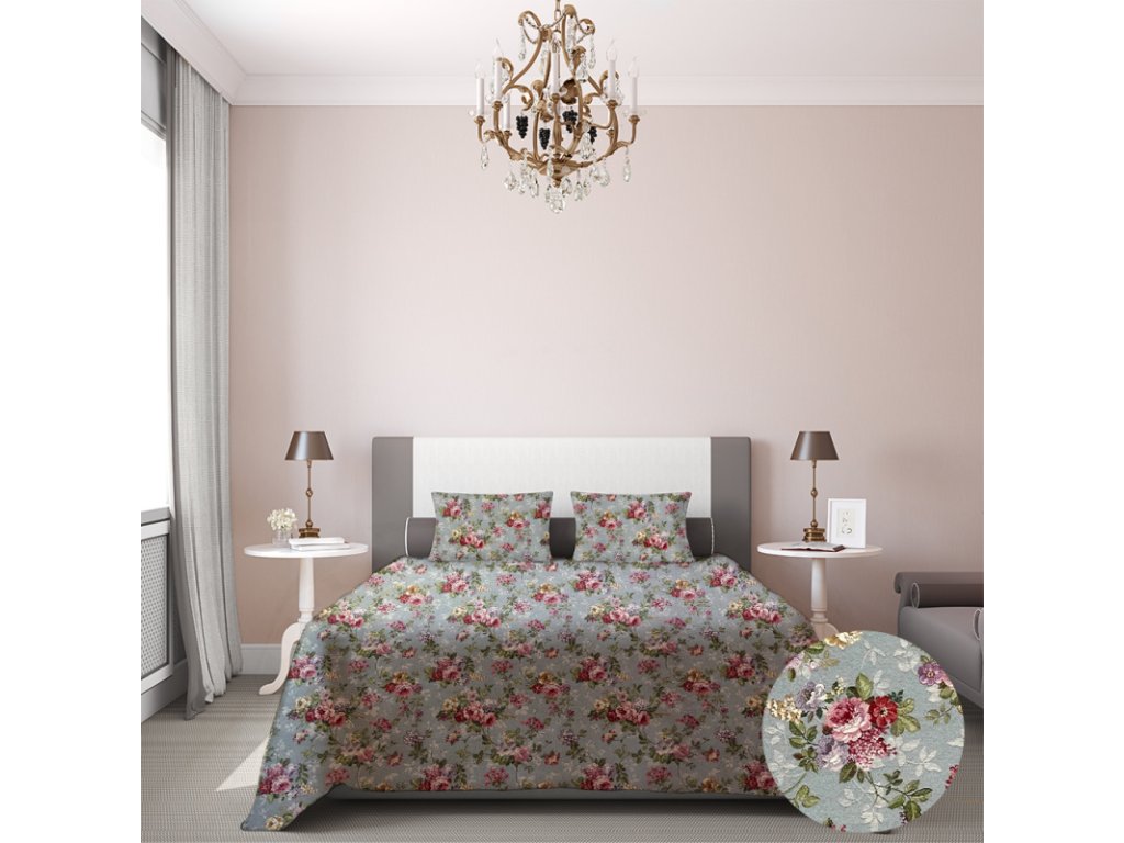 Ervi obliečka na vankúš Gobelínový - Jemné ruže na šedo-modrom