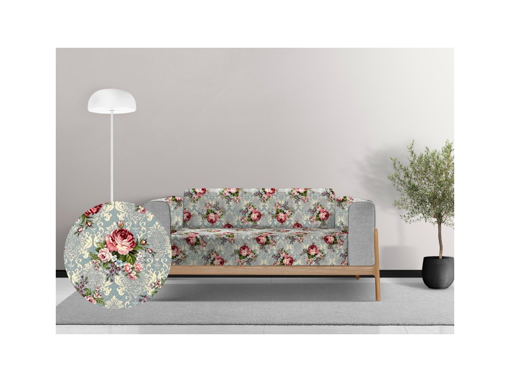Ervi Gobelínový prehoz na kreslo - Kvetinová symfónia na šedo-modrom