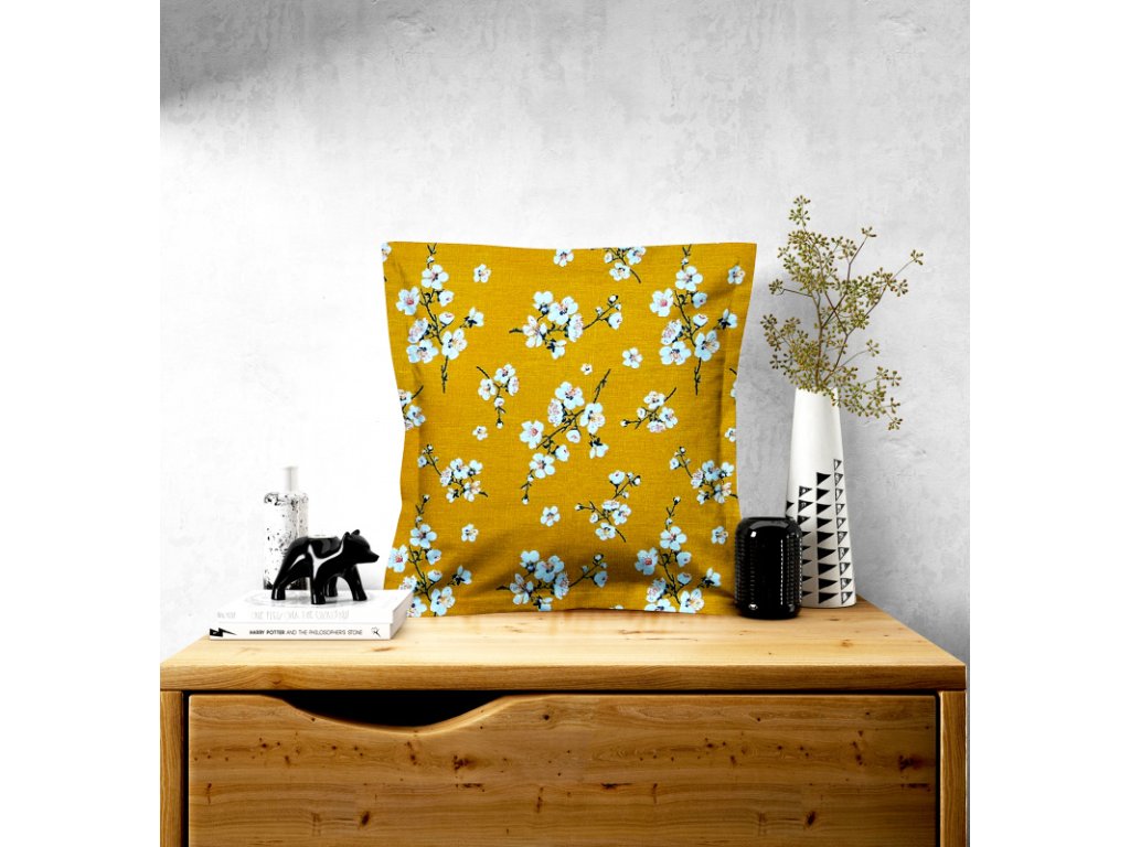 Ervi obliečka na vankúš bavlnený s lemom - kvety na horčiciDodatočné parametre