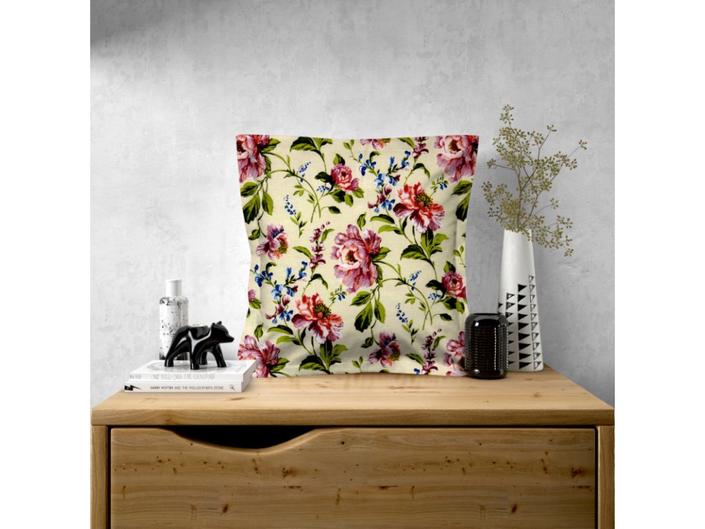 Ervi obliečka na vankúš bavlnený s lemom - pivonky na pieskovom