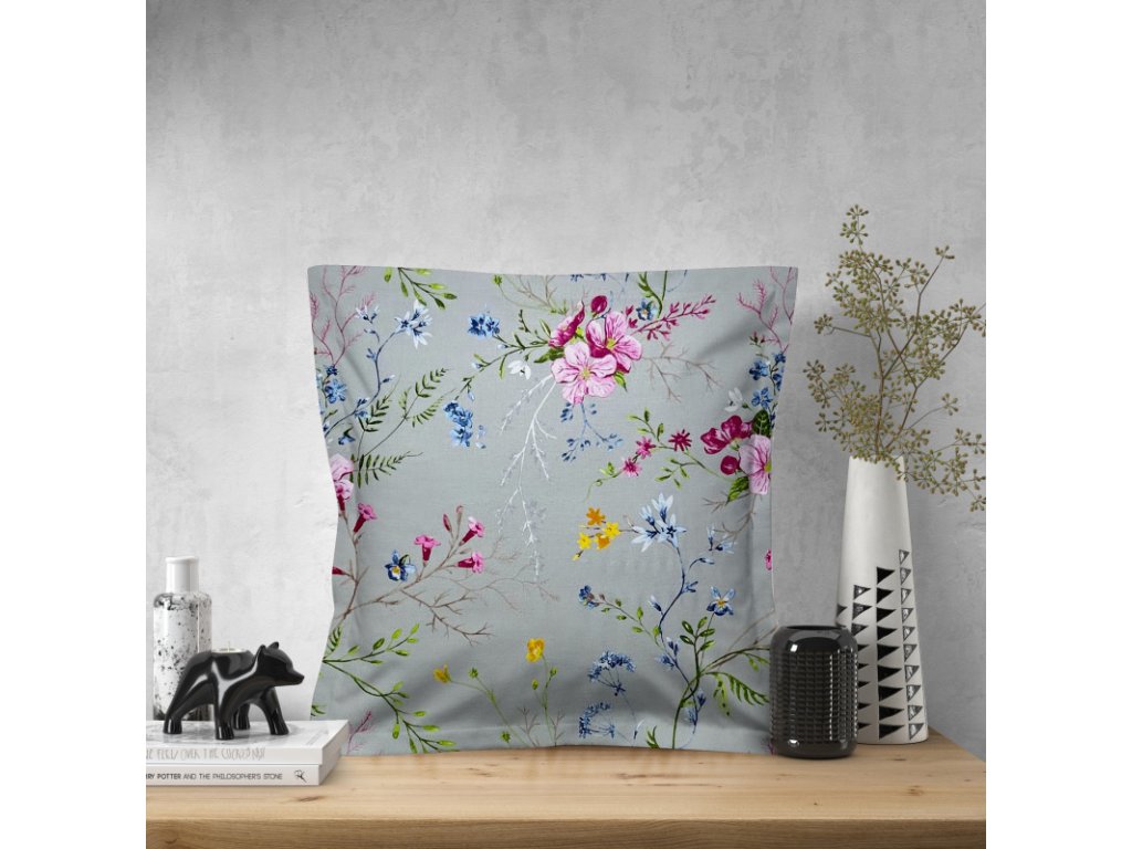 Ervi obliečka na vankúš bavlnený s lemom - Pole kvitnúce
