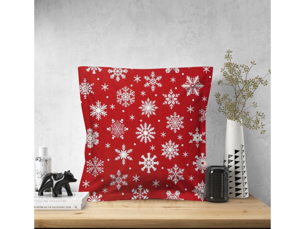 Ervi obliečka na vankúš bavlnený s lemom - snehové vločky na červenomDodatočné parametre