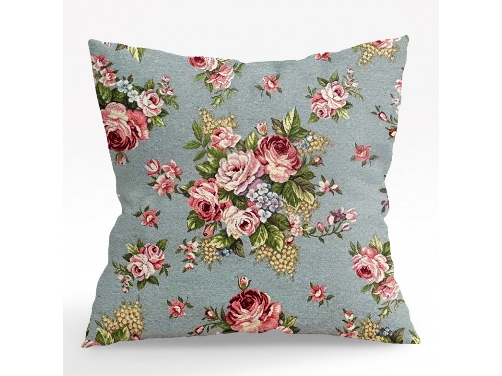 Ervi obliečka na vankúš Gobelínový - Jemné ruže na šedo-modrom