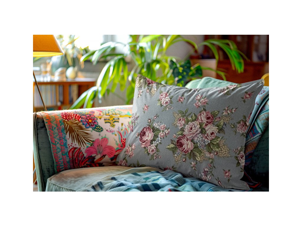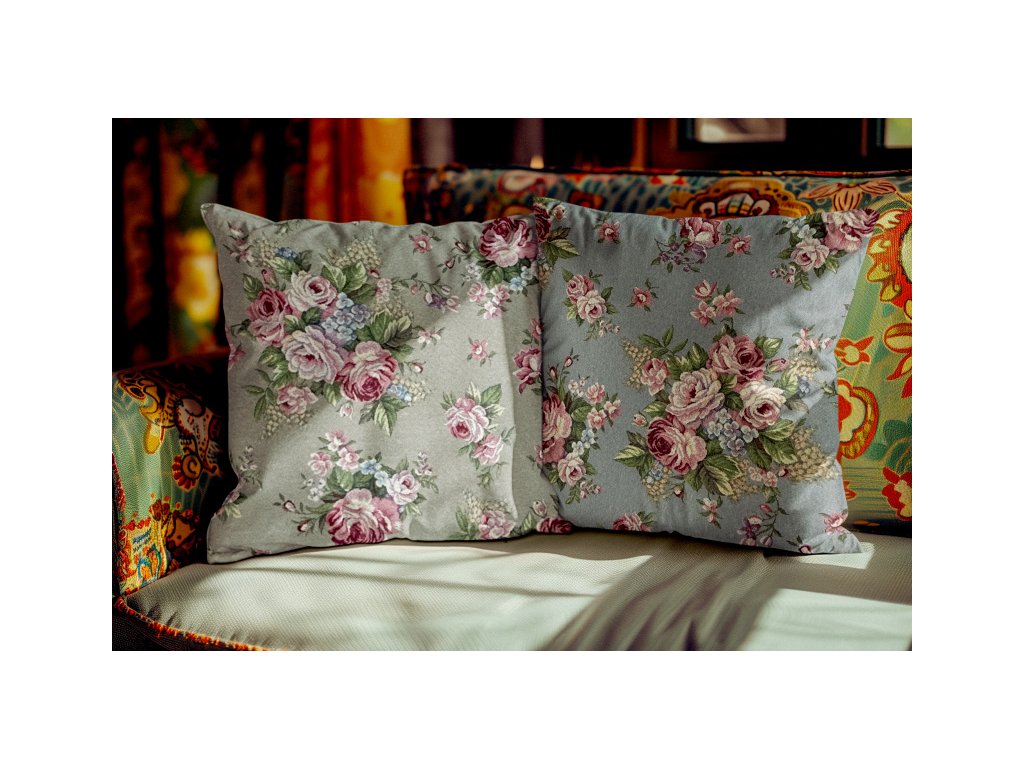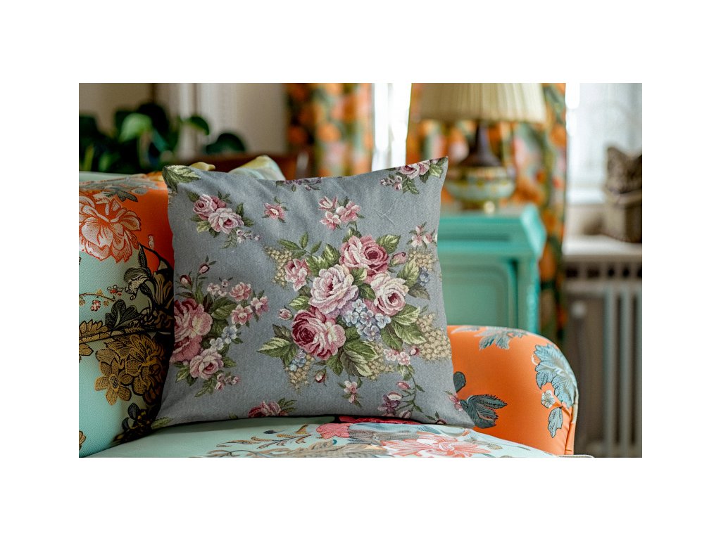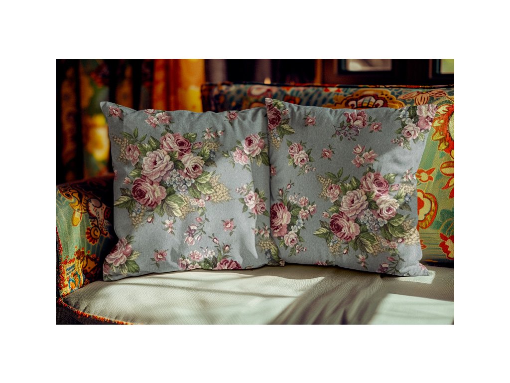 Ervi obliečka na vankúš Gobelínový - Jemné ruže na šedo-modromDodatočné parametre