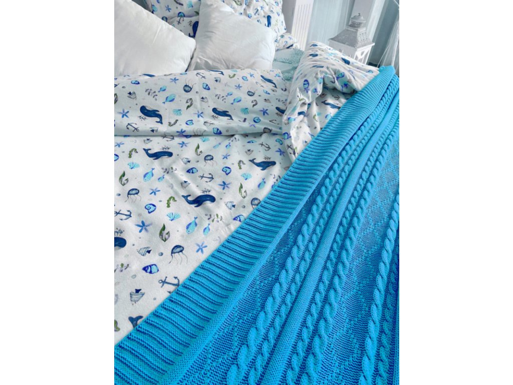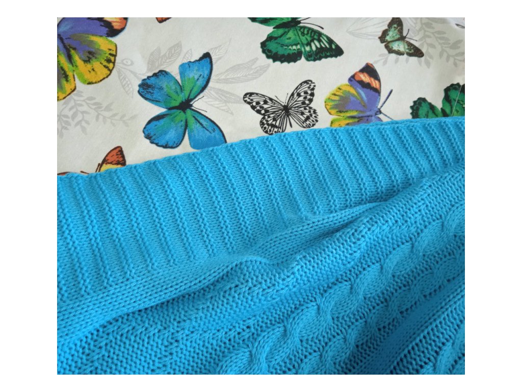Pletená multyfunkčná deka-prehoz na posteľ-modrá, 220x240 cm