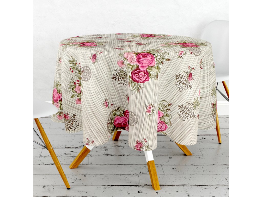 Obrus PVC okrúhly DC-6575D – Ružová záhrada v čipke (rôzne veľkosti)