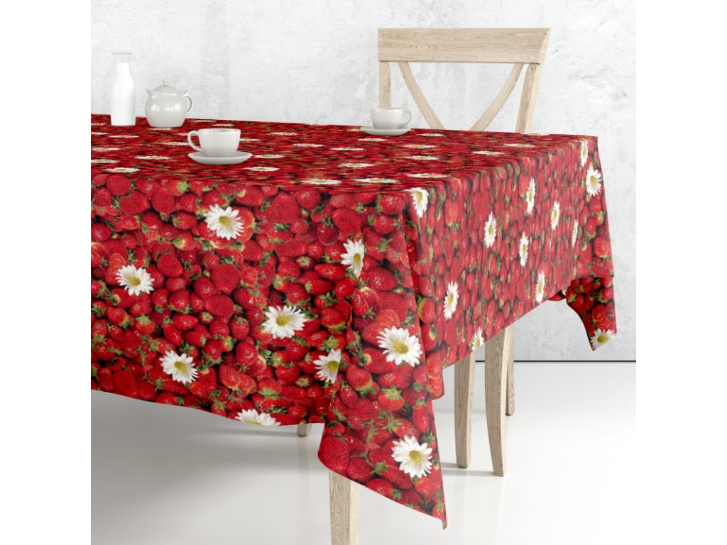 Omyvatelný PVC ubrus v šířce 140 cm s jahodovým vzorem