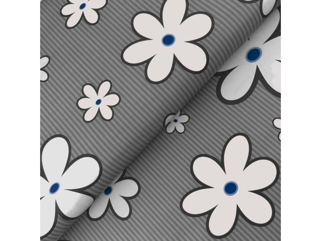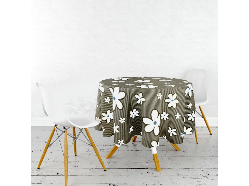 Ubrus PVC kulatý DC-900D – Kopretinový tanec na šedém (různé velikosti)