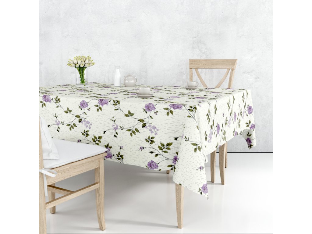 Omyvatelný PVC ubrus v šířce 140 cm s květinovým vzorem. Z rubové strany je ubrus opatřen textilní vrstvou, která jej zpevňuje a zároveň zabraňuje klouzání ubrusu po stole.
